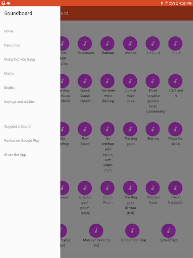 The app comes complete with Big Shaq's best quotes from Fire in the Booth, his single and a selection of other interviews "Quick Maths, Man's not hot, Is-land records, The ting goes...", and more.