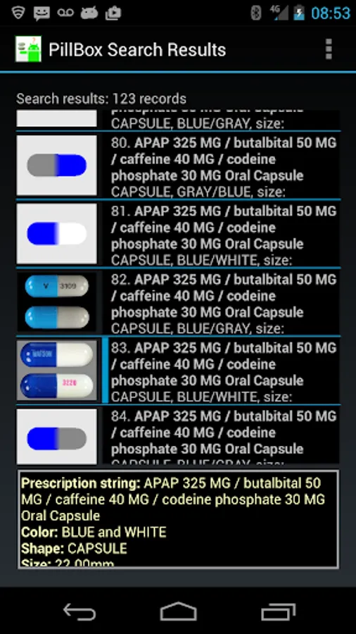 PillBox Info is a small utility that provides a friendly interface to the U.S. National Library of Medicine Pillbox API. The Pillbox database contains detailed information on thousands of medical pills, as registered with the US National Institutes of Health. Using PillBox Info, pill data can be retrieved using several different criteria, such as pill appearance, ingredients, and code numbers.
