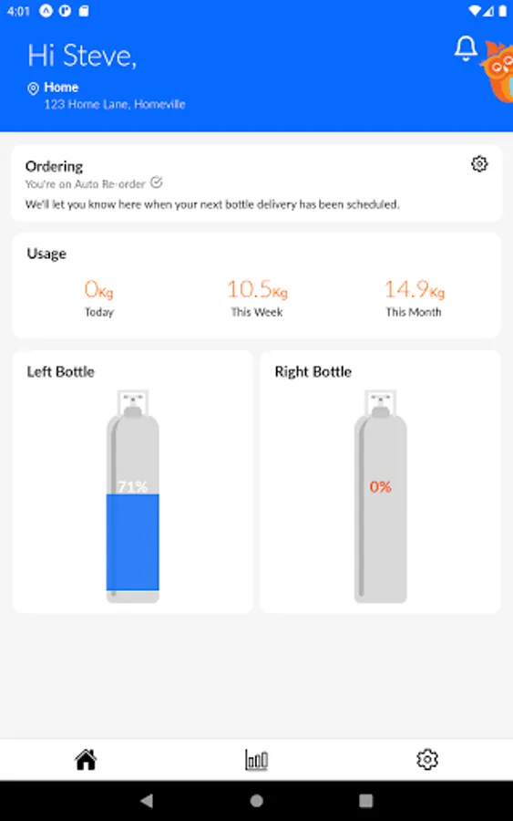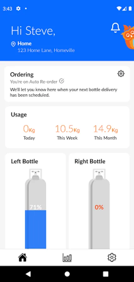 GasOwl is a combination of a beautifully crafted, world-first GasScale and an App that analyses your usage and manages your gas supply.