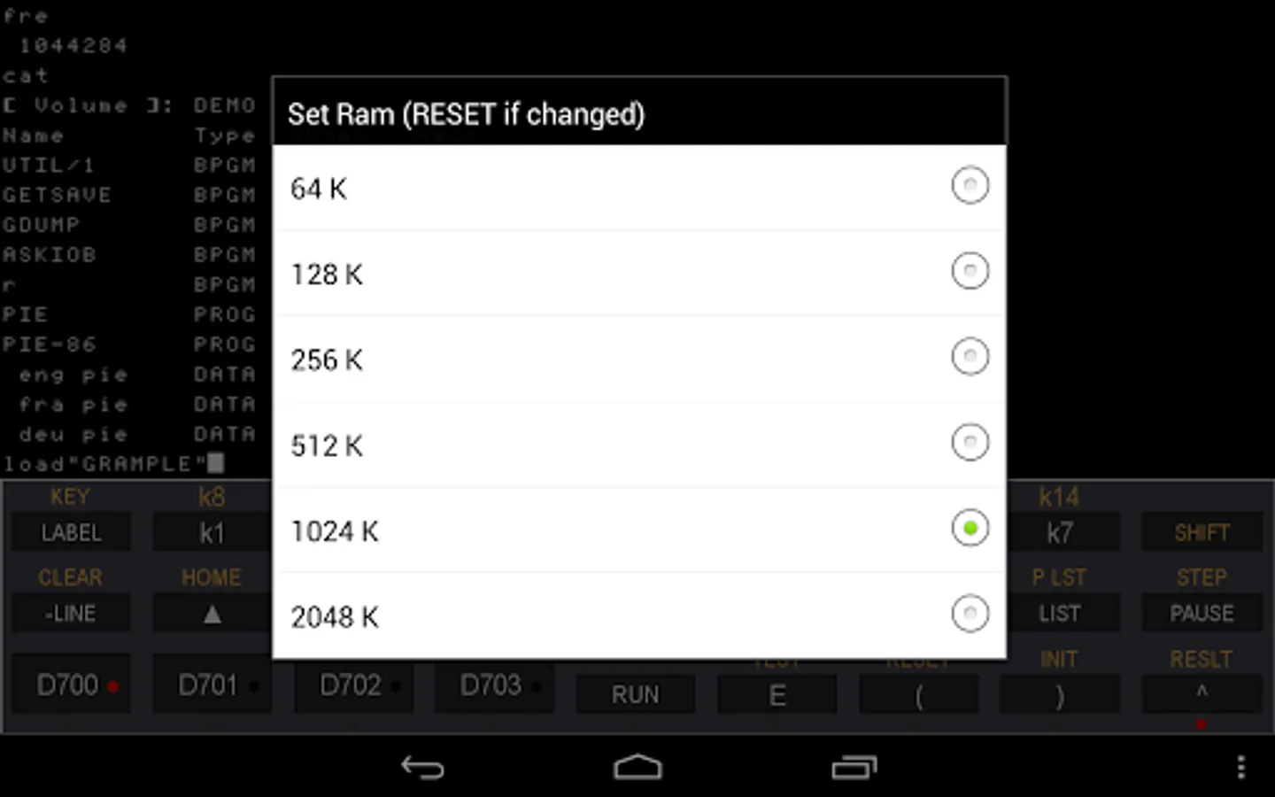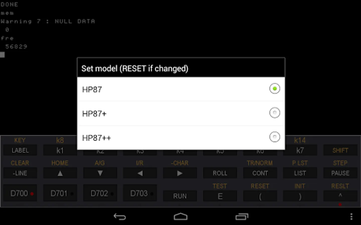 HP 87 hardware emulator (best display on 1280x800 screen device)