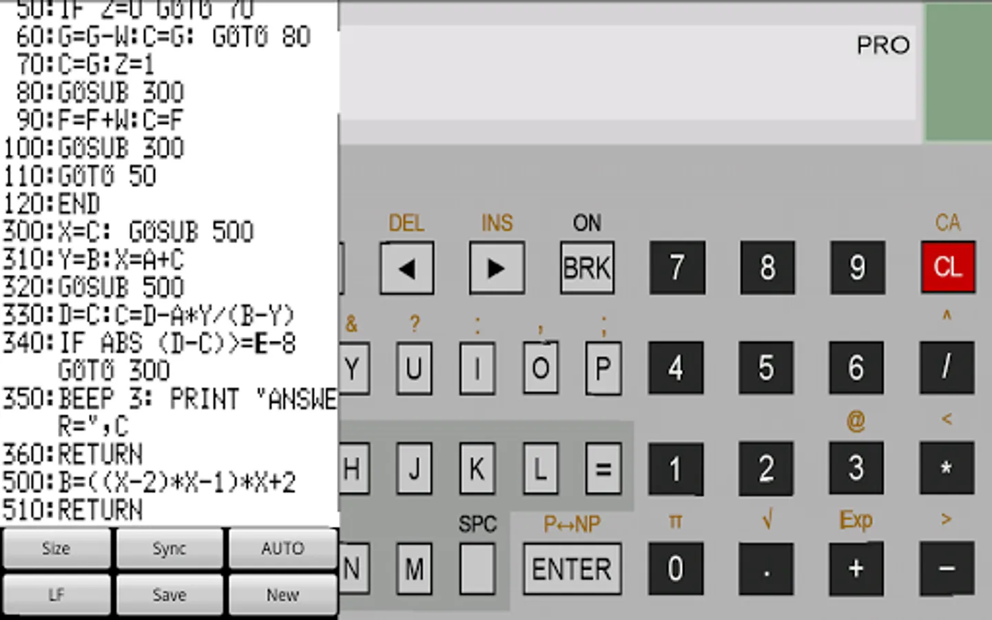 - RUN/PRO/RSV mode by touching 'green' zone at the right of emulated lcd