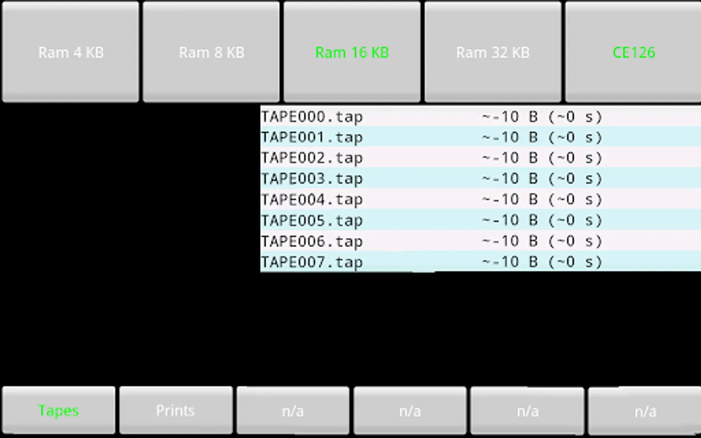 - Tapes support (import and export .tap files from/to sdcard/go1403/tapes).