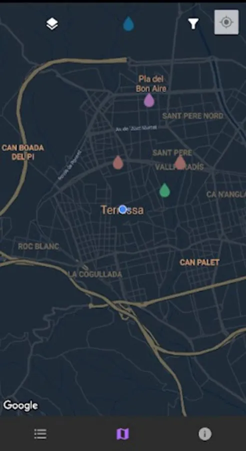 Fonts Terrassa aims to inform citizens about the location, name and characteristics of Terrassa's water sources through a map of the city showing the locations of all the sources.