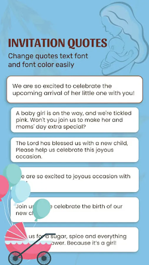 - Best Baby Shower quotes included,select your favorite Baby Shower quote.