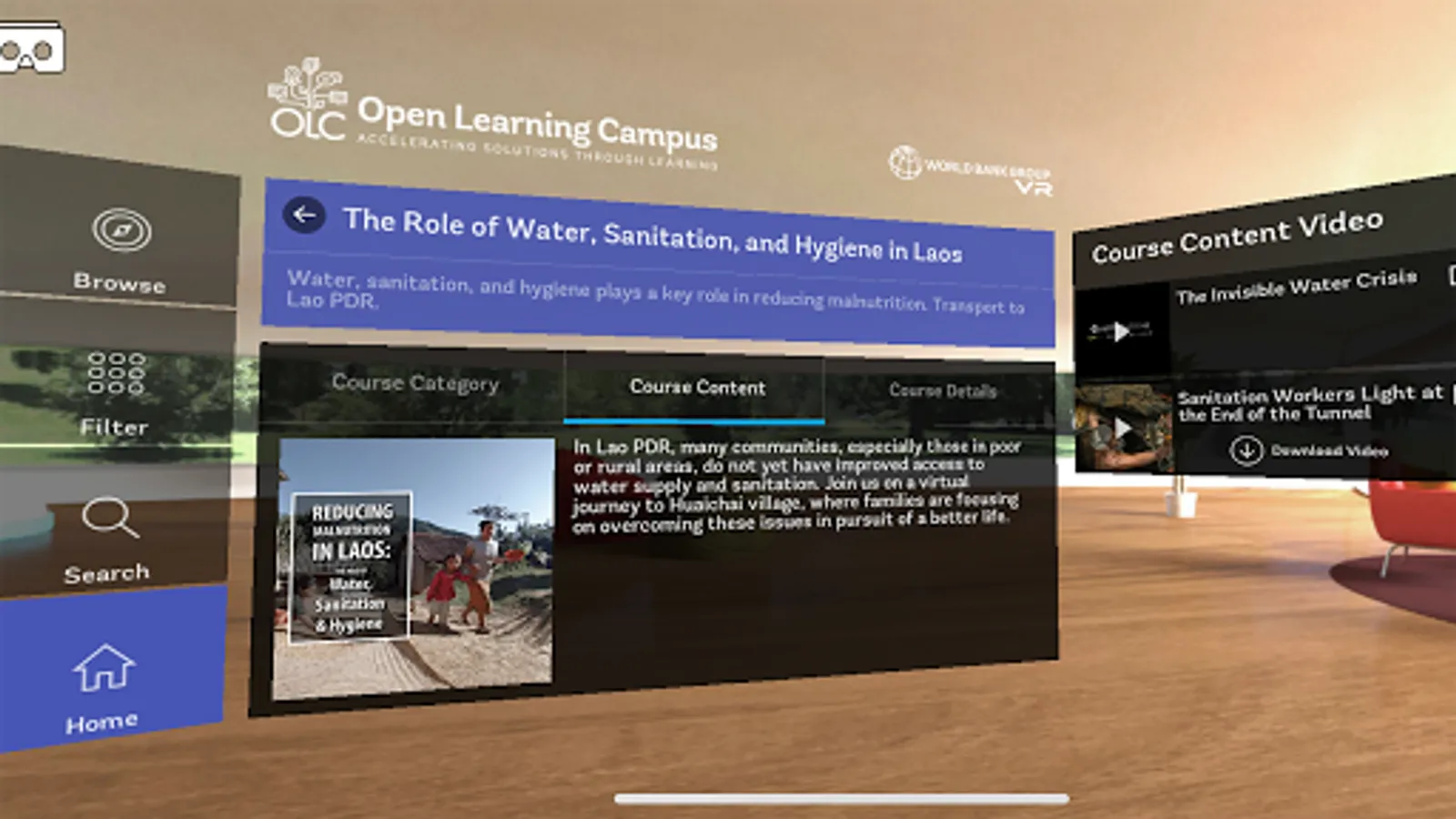 Whether you are a policymaker, development practitioner, or are curious to learn more, the WBG-OLC VR app is a place to virtually experience real-world challenges.