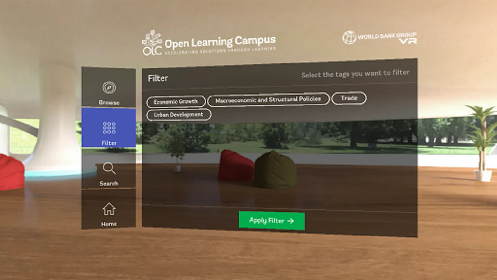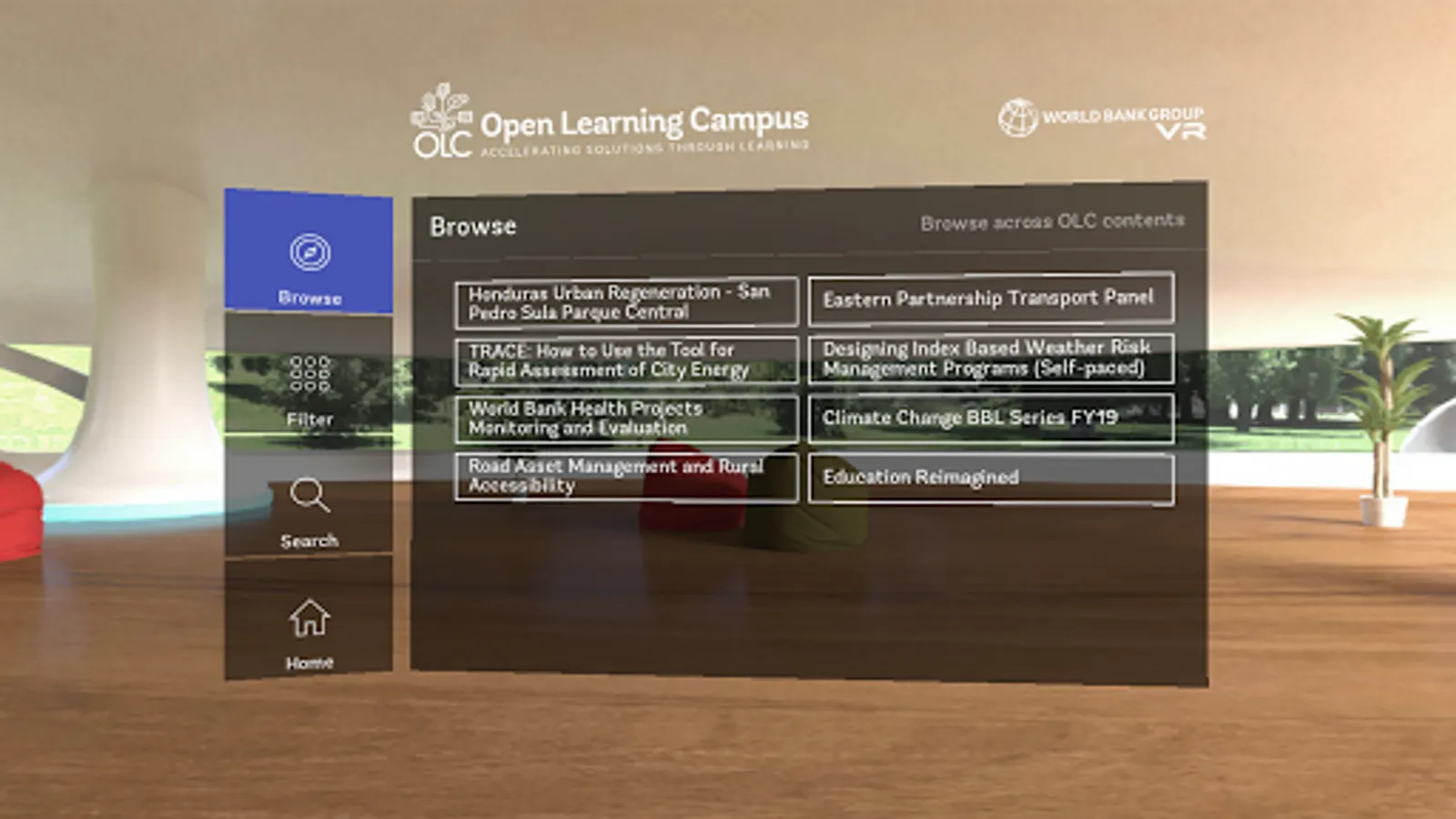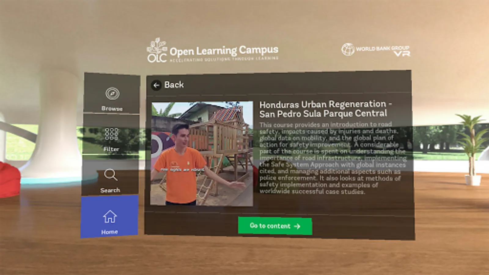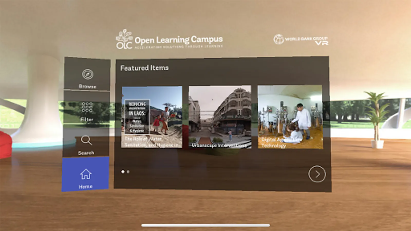 Real Learning in a Virtual World: Taking learning to the next level through the World Bank Group (WBG) - Open Learning Campus (OLC) VR app.