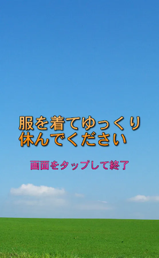 風通しの良い部屋で着衣と脱衣を繰り返して体を鍛える大気浴(西式健康法では裸療法とも呼ばれている)を簡単に行うため作成した支援アプリです。