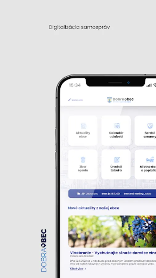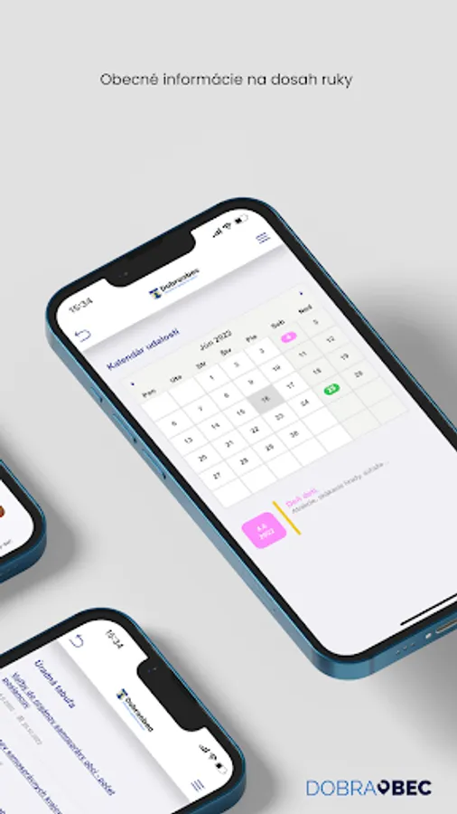The mobile application provides you with an overview of new announcements and news, a calendar of events including waste collection, taxes and fees, parish announcements, an official board and important contacts at the municipal office.