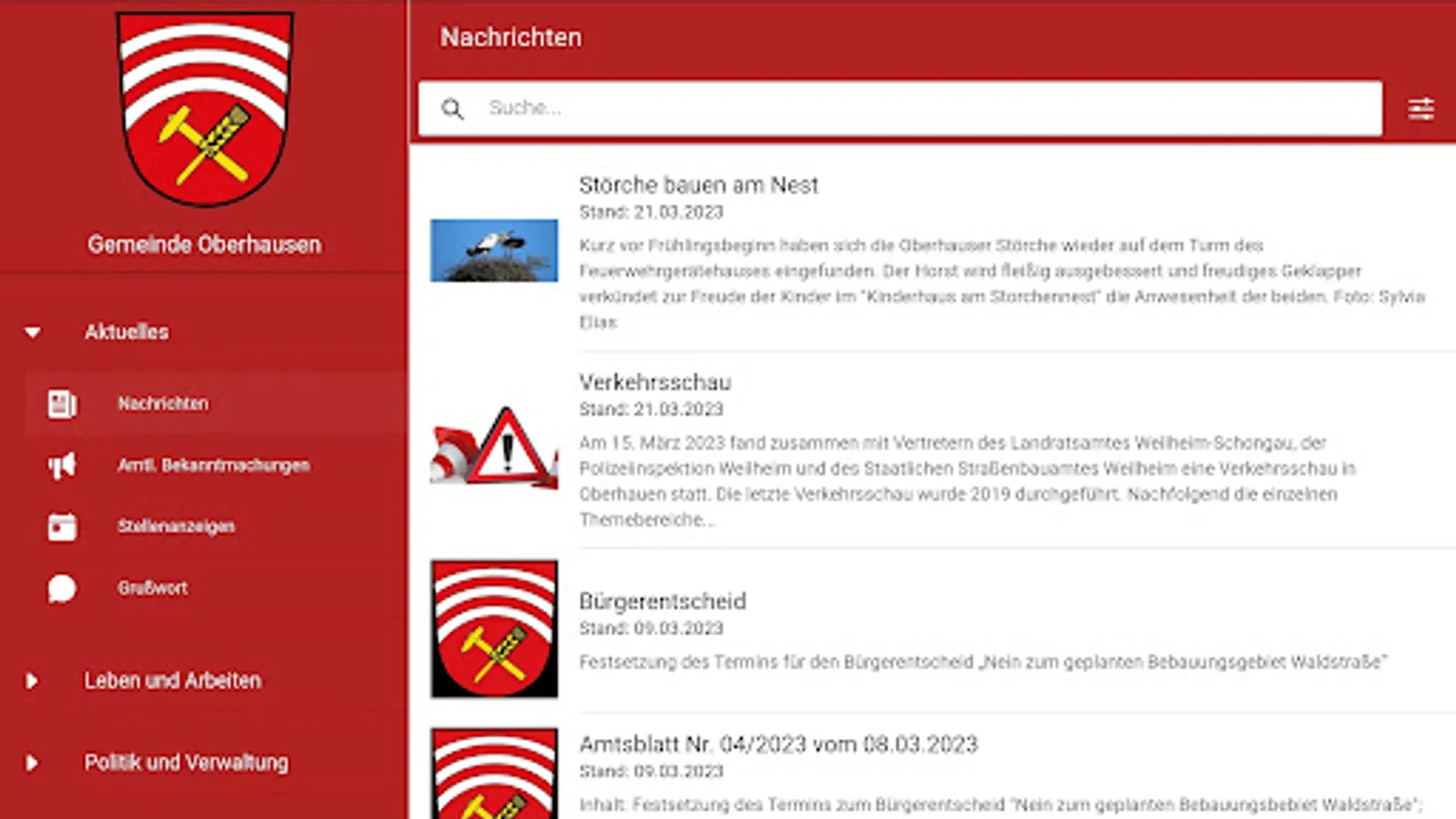 The Oberhausen (Upper Bavaria) APP provides citizens and tradespeople in Oberhausen with information and news about the community!