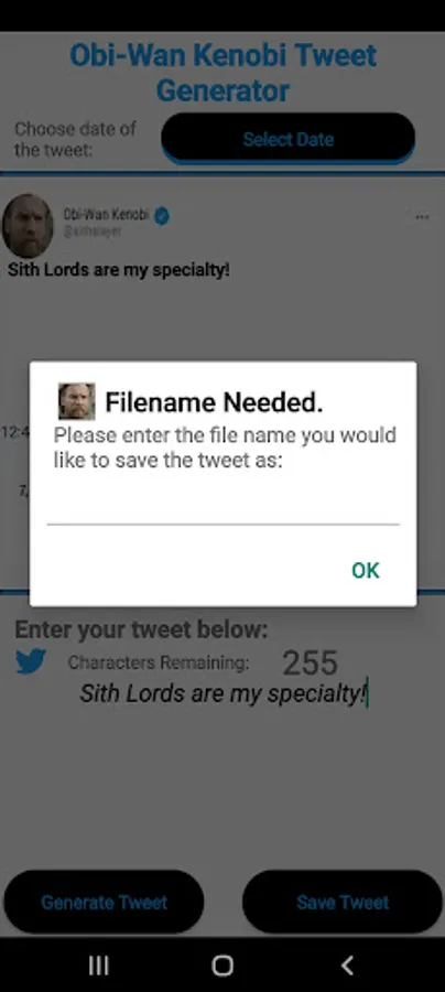 Obi Wan Tweet Generator Screenshots