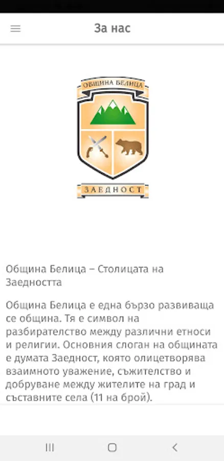 The municipality of Belitsa is a rapidly developing municipality. It is a symbol of understanding between different ethnicities and religions. The main slogan of the municipality is the word Togetherness, which personifies mutual respect, coexistence and harmony between the inhabitants of the city and the constituent villages (11 in number).