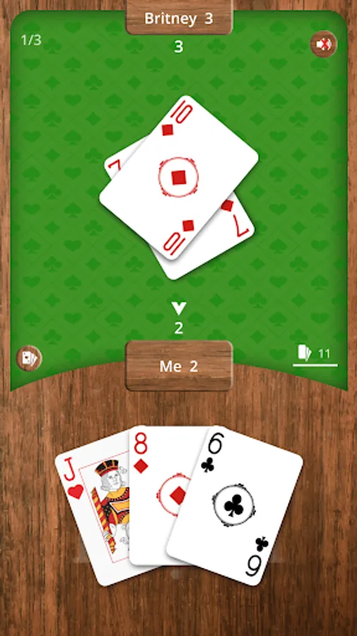 The player to dealer's right begins, and the turn to play passes anticlockwise. A turn consists of playing one card from your hand face up on top of the discard pile.