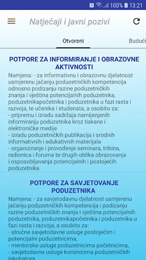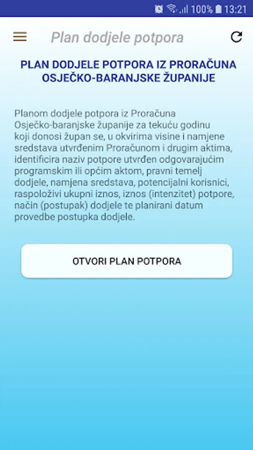The OBŽ Potpore application shows the plan for awarding grants and tenders, as well as public calls that have been opened, since they ended and ended in Osijek-Baranja County.