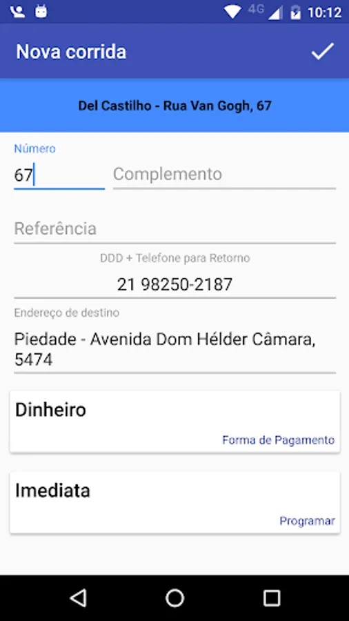 Taxi request via Smartphone.