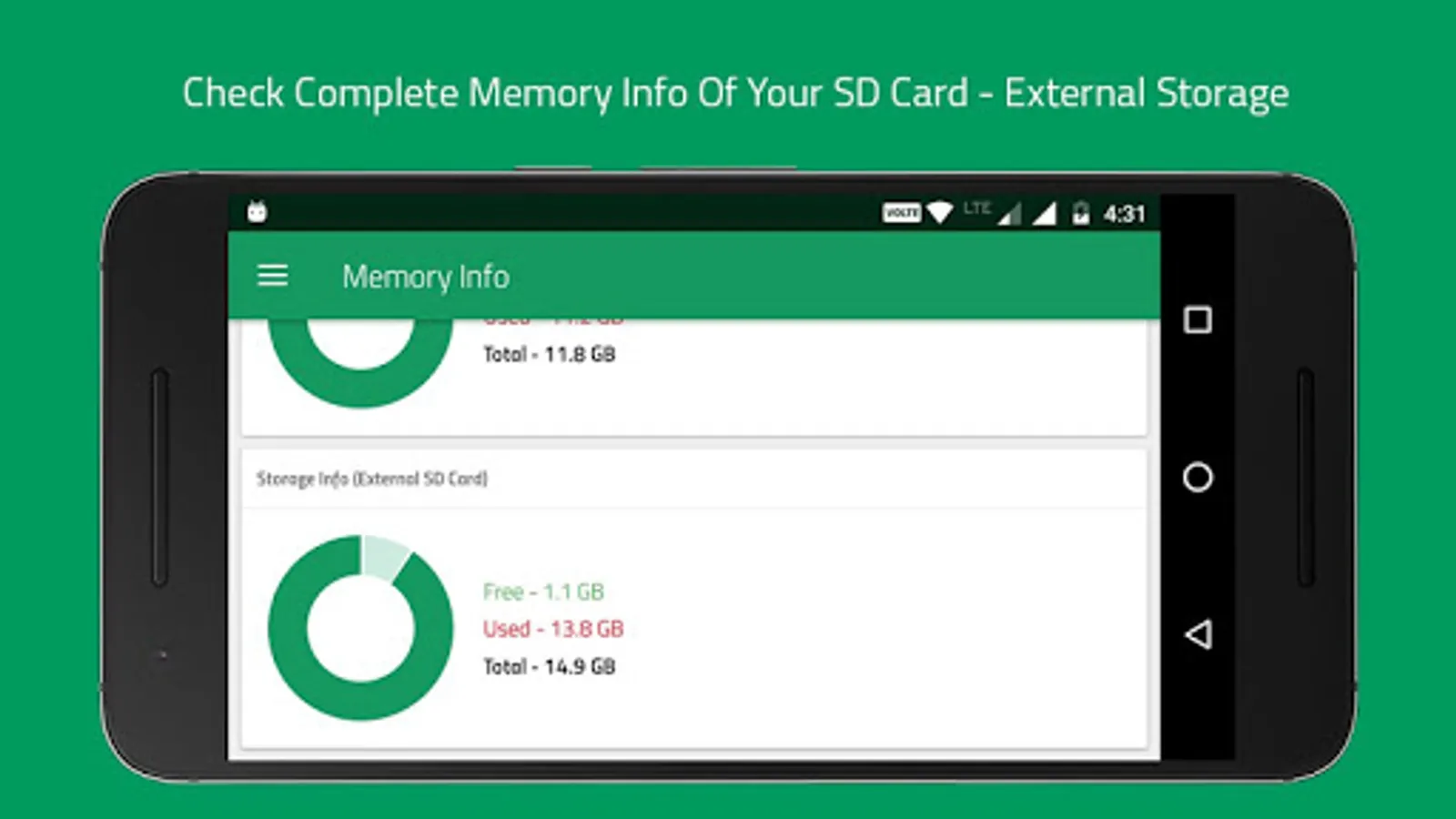 Also if you are using any external SD card in your Android Smartphone to extend the memory storage for your extra need, then Memory Info app also allows you to check the total size of that external storage SD card available or free memory of external storage SD card and also the used memory of external storage SD card.