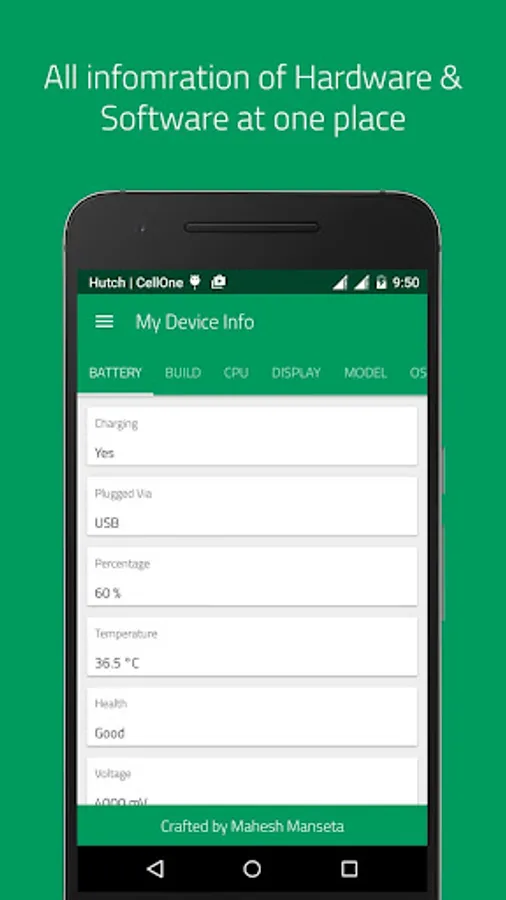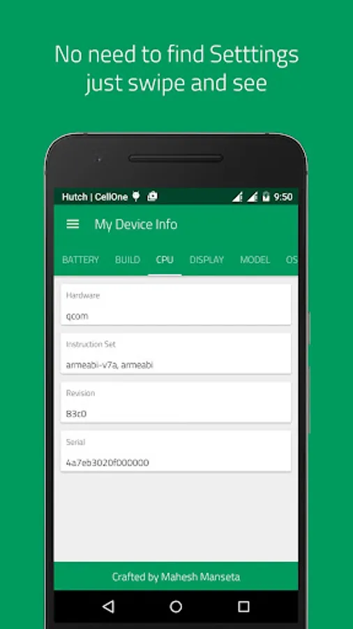 No need to check settings and find them one by one in different module on your smartphone, rather download this app and check all the Device Info at one place, just swipe and check, no boring navigation.