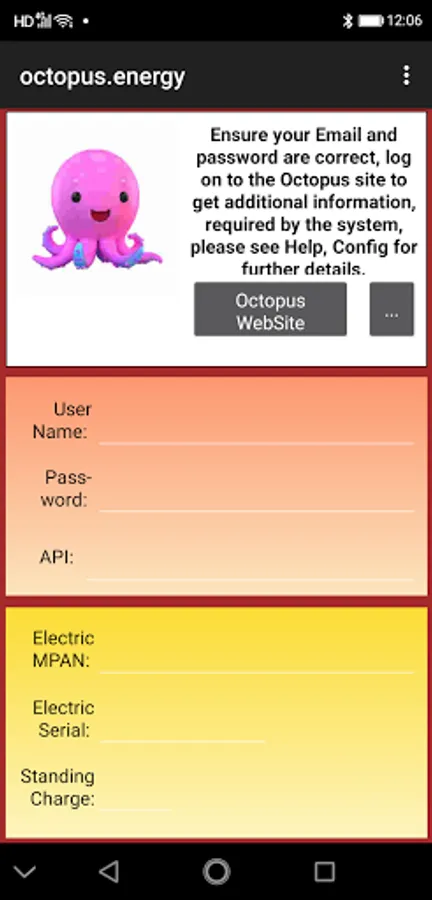 Please note, when configuring the settings screen it is best to copy and paste from your Octopus settings screen, i.e. API, MPAN, MPRN, and Serial Numbers, also of note and where most people go wrong, standing charges and gas unit charge are shown in pence on Octopus settings but must be entered in £0.00 format in the app's settings, so for instance if shown as '2.67p' it should be entered as '0.0267', similarly if shown as '17.85' it should be entered as '0.1785' We hope that helps and you have a successful install.