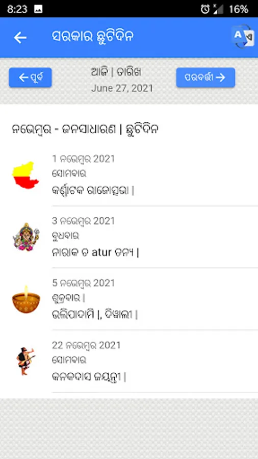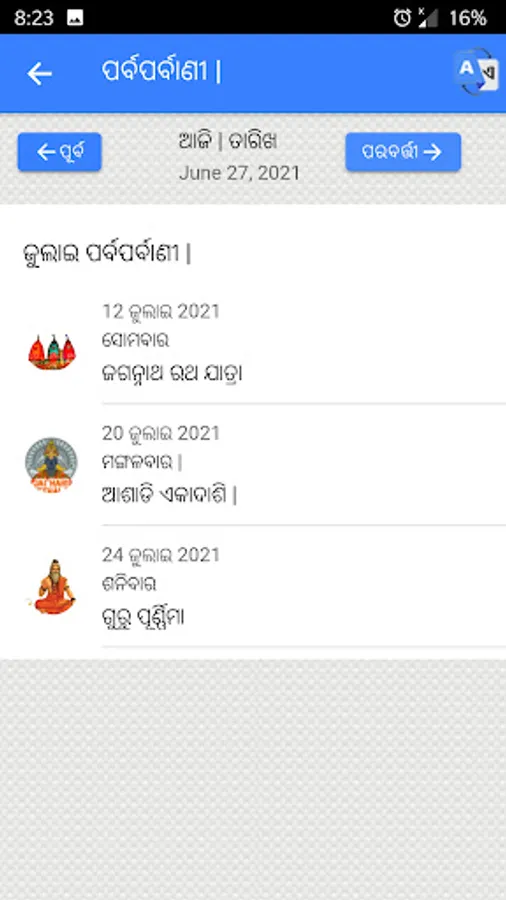 Odia calendar 2023 is the Odian app for Orisha people this app is free to use and it works both the online and offline and it is free of cost. This app has festivals details, government holidays list 2023, marriage muhurats, vehicle purchase muhurat and many more details. thanks for downloading odisha calendar.