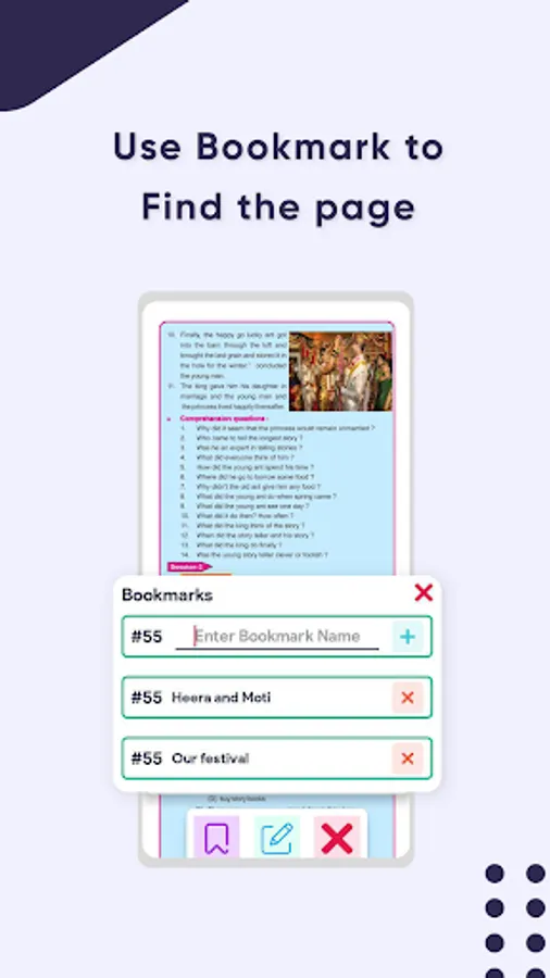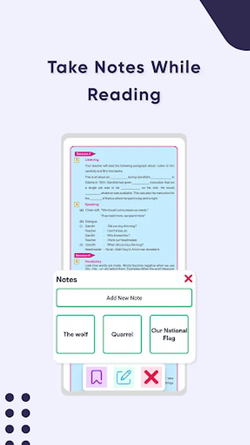 You can note down the essential points as simple notes in this app while studying, which is a great advantage for you. By using the bookmarks feature you can easily find the areas and pages where you left off.
