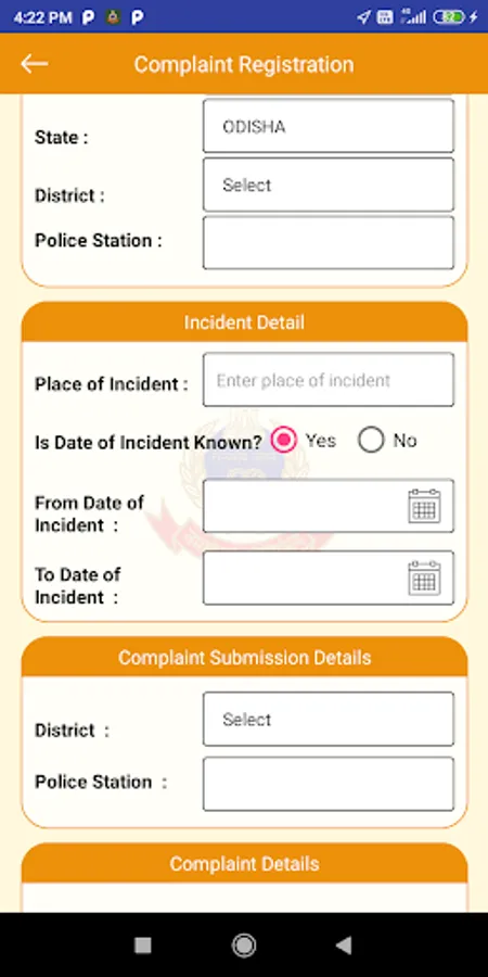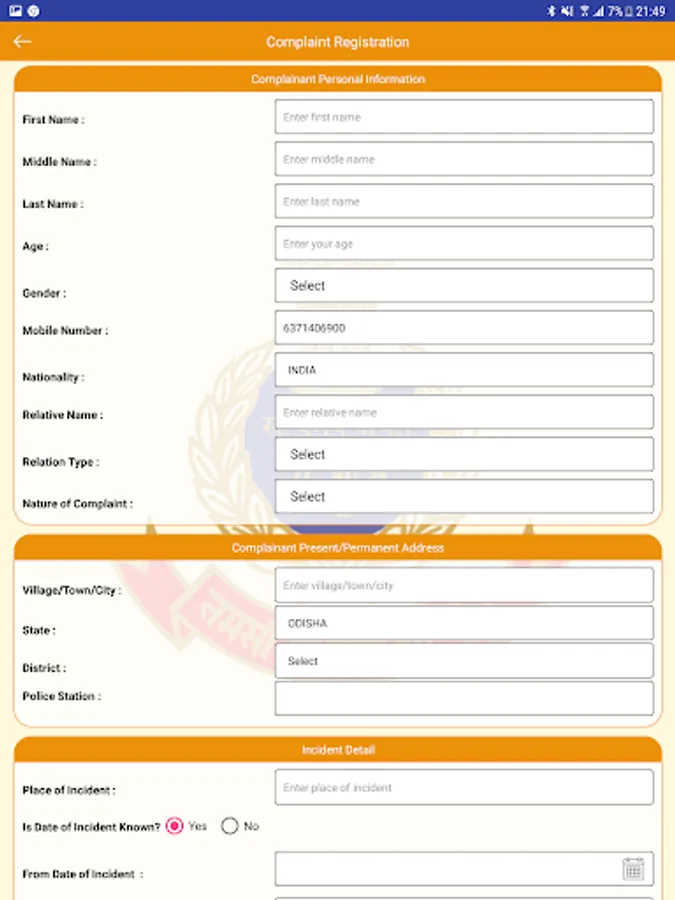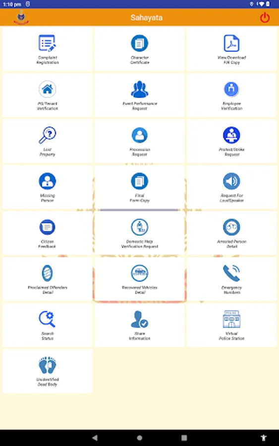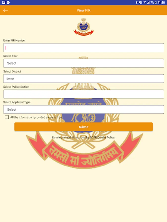 Odisha Police is committed towards time bound delivery of services to the Citizens and provide good governance in the State. In order to provide better and quick services to Citizens, Odisha Police has launched Mobile App "SAHAYATA" under CCTNS Project. This App will enable citizens to request for different Police services, complaints and download copy of FIR as well as to track the status of different services.