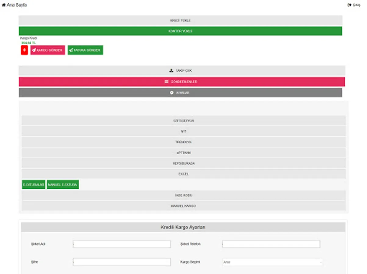 Aras and UPS credit cargo system that you do not need to agree with cargo - Efatura system with prices starting from 14 kr.