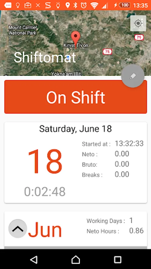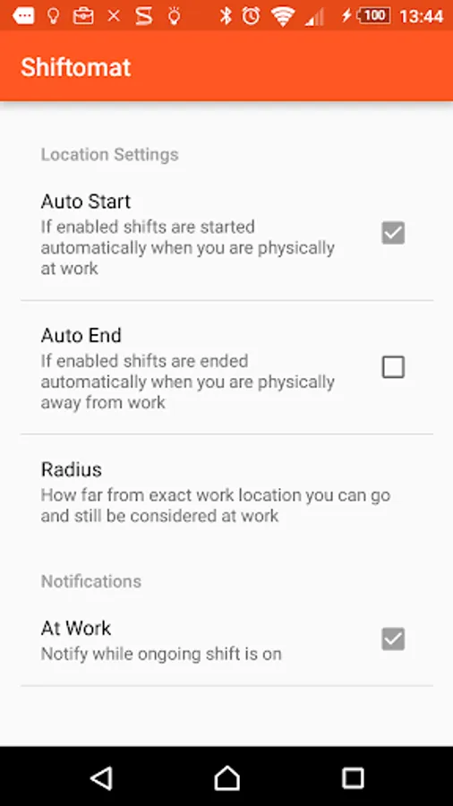 Shiftomat is Location aware - set your working location, and when Shiftomat detects you are at work location it will automatically log your working hours while you are there.