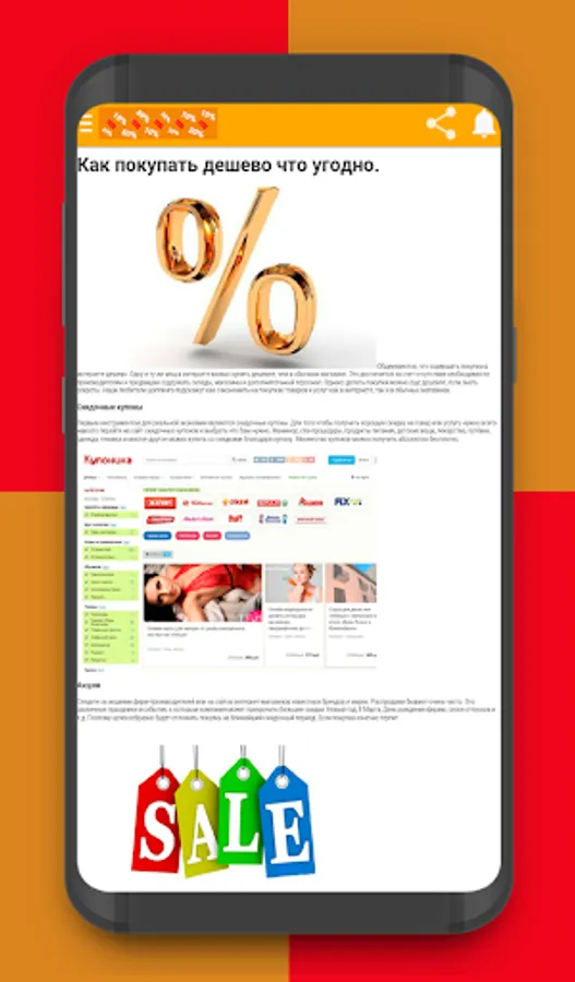 In the "Good offer - buy at a discount" application, we tell you how to look for discounts, promotions with cash prizes, what gift certificates are, how to use them and not overpay.