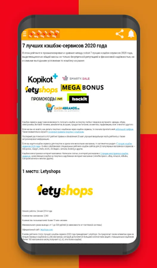 In the application, we have made reviews of the most popular coupon aggregators and sites where gift cards are available. Now you can easily find gift cards in stores with the "Great Offer" application, and buying gift certificates will not be difficult for you. Install the application and stop overpaying!