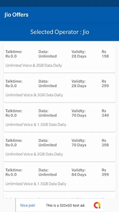 Supported Operators : Jio ,Idea, Airtel,Vodafone