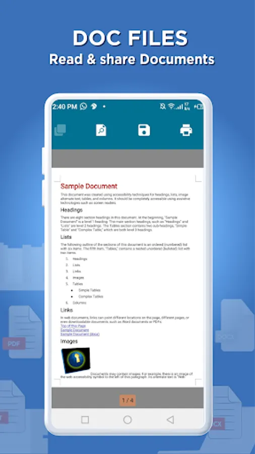 All documents reader and viewer pro will help you read all format documents like pdf files, word files, excel files, powerpoint files & all other files. All documents are very well managed in different categories which makes it very easy to read all documents. All files reader - document reader is a smart office application offering features of reading multiple format documents PDF Reader, Docs & Docx Reader, ppt reader, xls reader, txt reader, excel and other document reader. File opener - File reader & File viewer will open all files on your mobile phone.