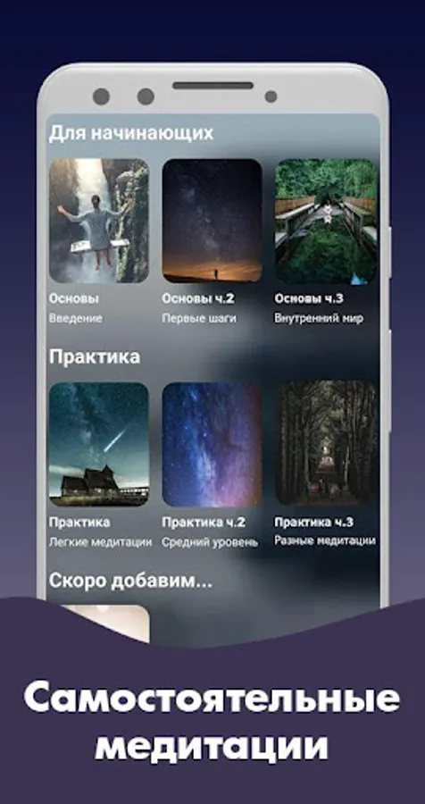 The application is designed for both beginning supporters and practitioners alike. Anyone can choose for themselves those activities that are more suitable for him. Now, without much effort, everyone can relax and cleanse their inner world.
