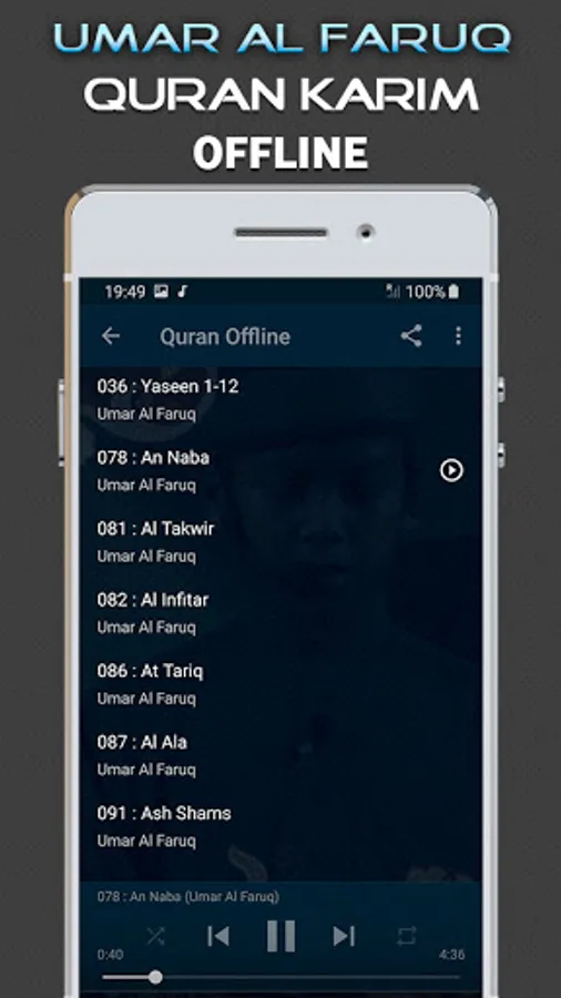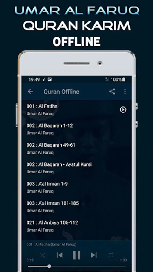 ● Al Quran Sheikh Umar Al Faruq is an App with complete Quran mp3 recitation.