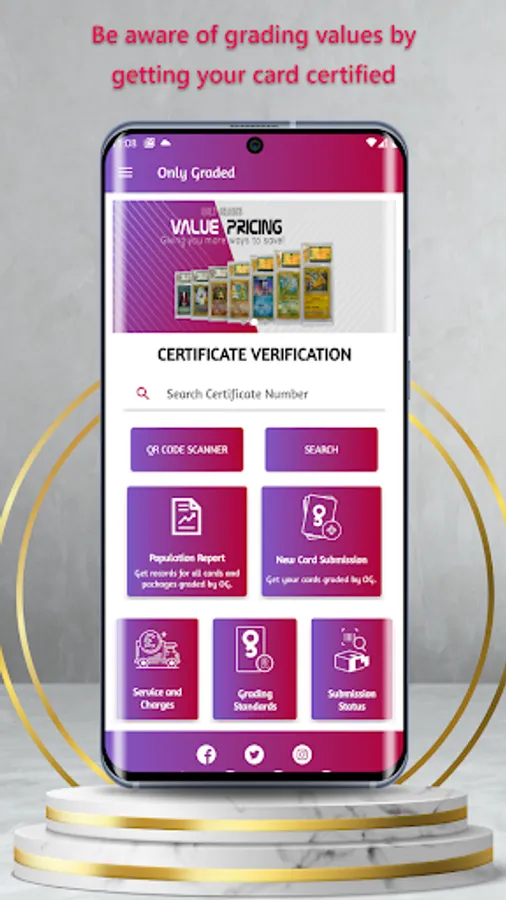 Through this app as a user, they can able to see the graded collection(s) pop reports by Only Graded as well as they can submit their own collection(s) for grading also.