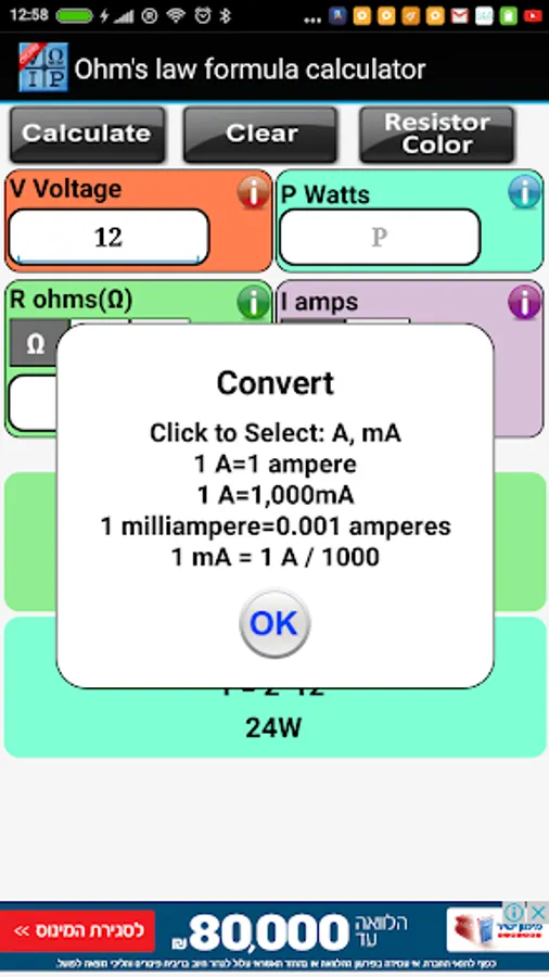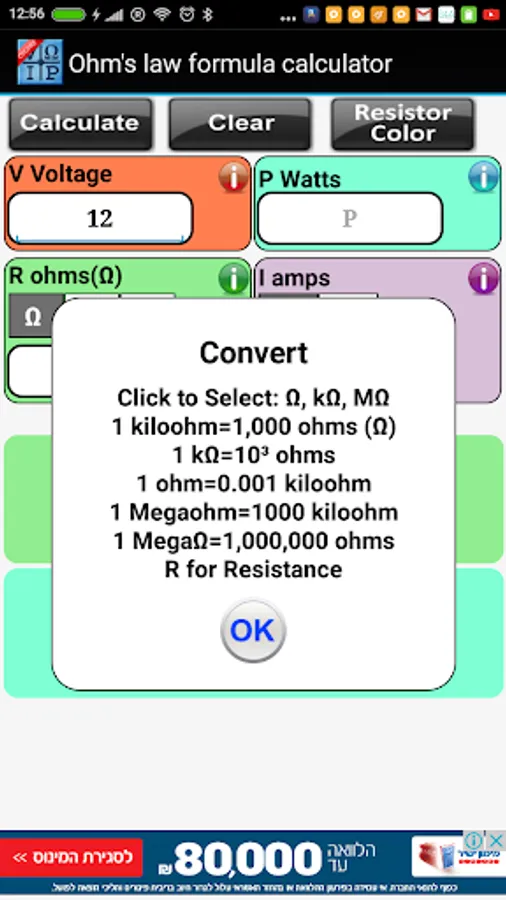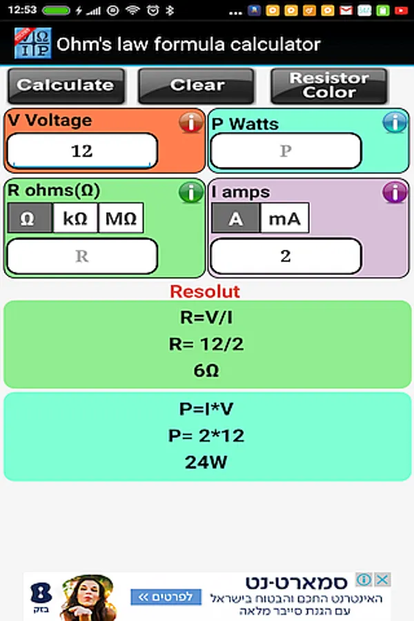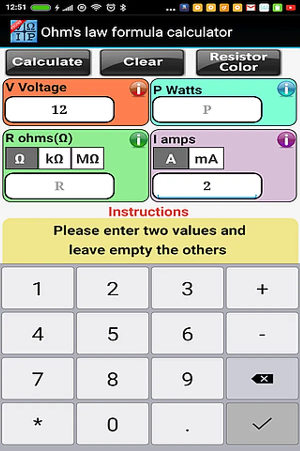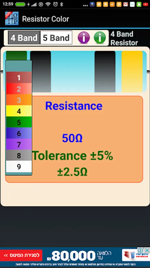 It is also very easy to calculate the resistors. Select 4 or 5 Band and then click on the resistor and the result appears.