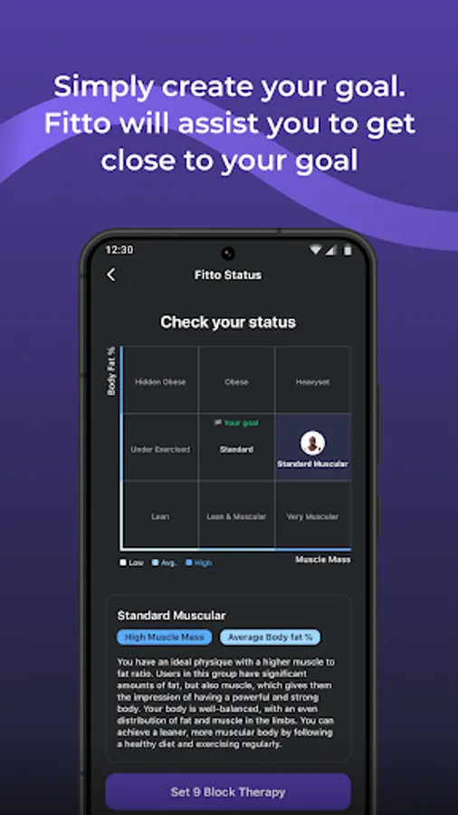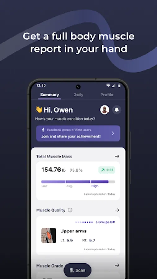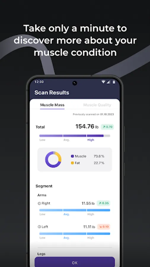 • Track your muscle condition: Muscle Mass, Muscle Quality and Muscle Grade.