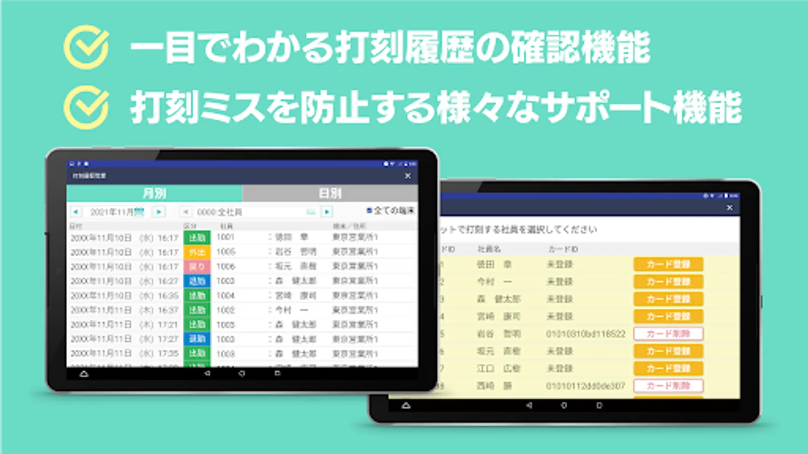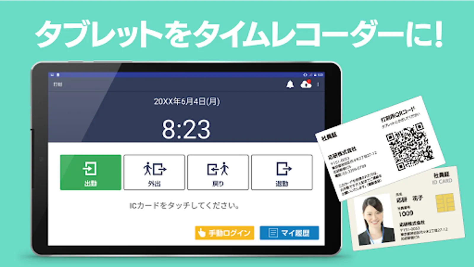 Since it works on an inexpensive Android tablet, the introduction cost can be significantly reduced compared to a general IC time clock.
