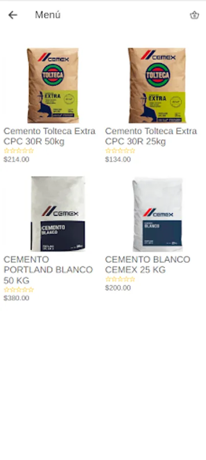 Packaged: cement, mortar, lime, plaster, stucco, Cemix tile glue, crest tile glue, zero thin, zero thick.