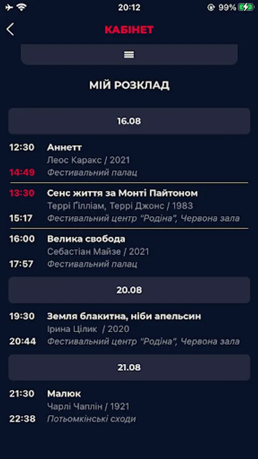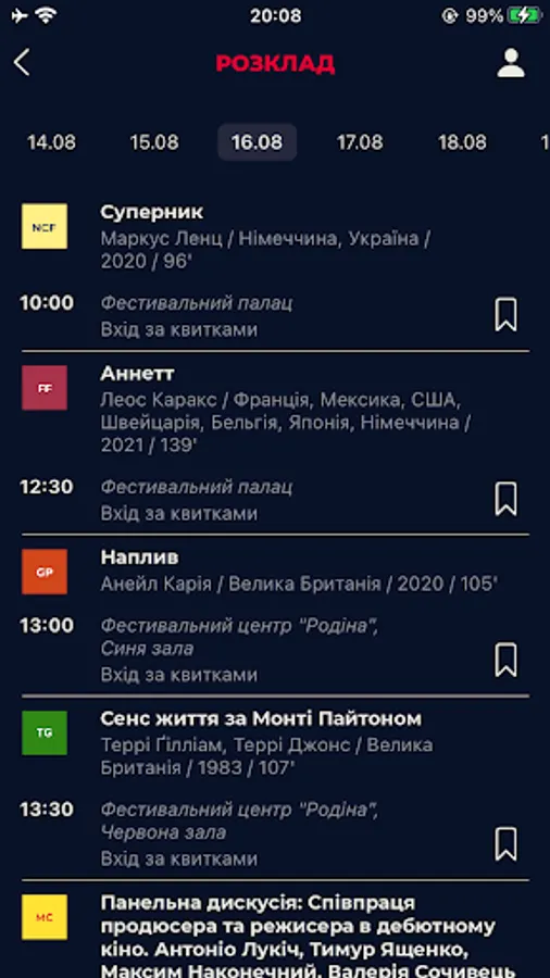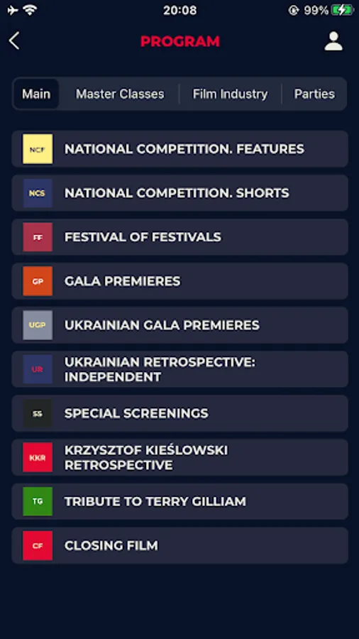- Use the dark theme for the situations when you have to open the app while watching one of the festival films