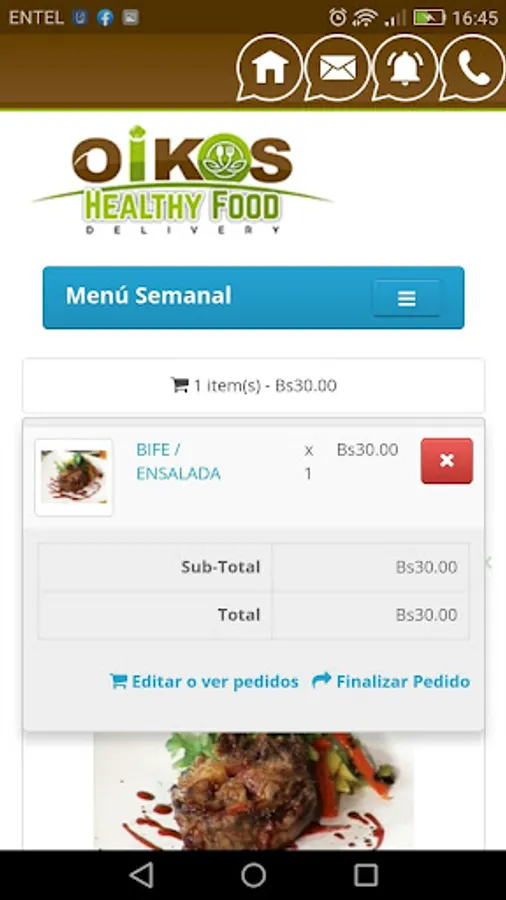 Through the APP OIKOS FOOD YOU CAN PERSONALIZE YOUR ORDER, HAVE OUR UPDATED MENU WITHIN YOUR HAND UPDATED AND YOU KNOW THE NUTRITIONAL COMPOSITION OF YOUR ORDER.