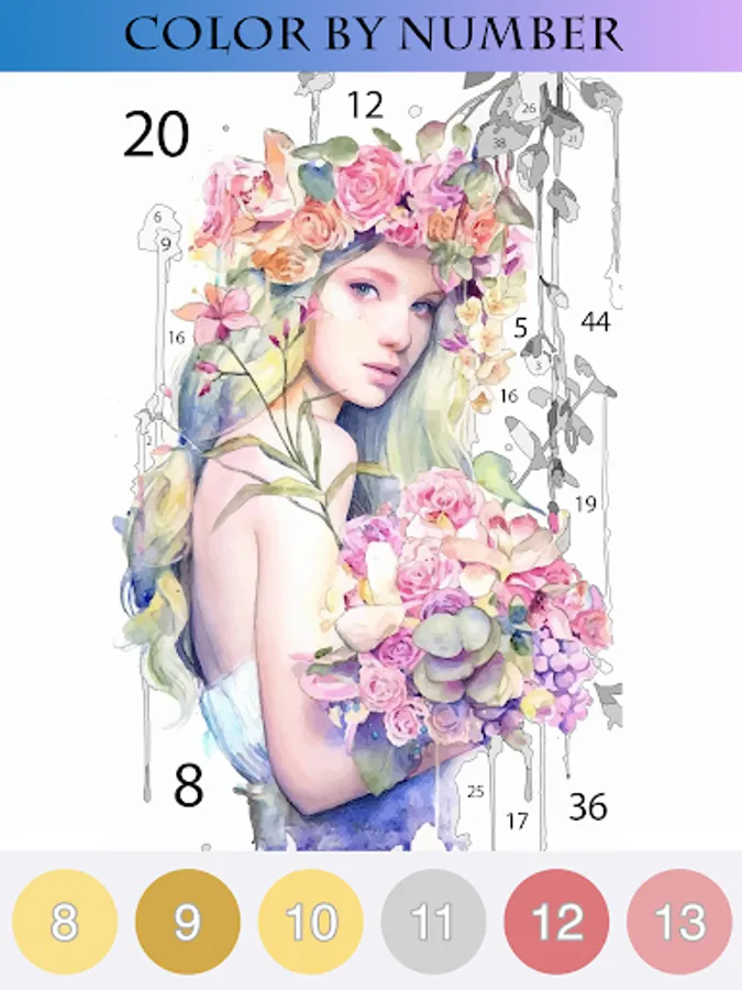 Open your new Colouring pictures book, find different unique coloring pages with Landscapes, Travel, Cute Animals, Cute girls, Oil painting, People, Cute Food, flower, Sports, StillLife, Ocean, Vehicles, Holiday and many more. Paint by Number and recolor your favorite pictures and if you can’t finish a picture because of a tiny hard-to-find cell you can Use hints.