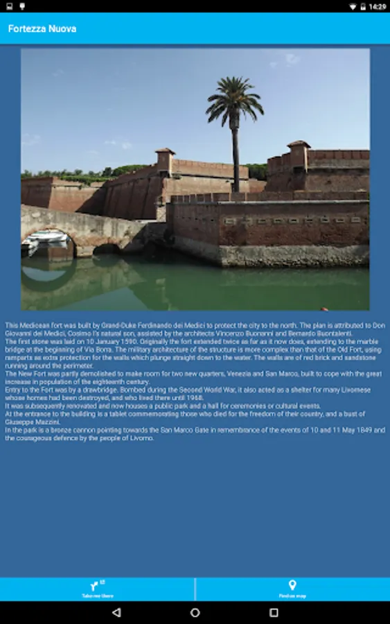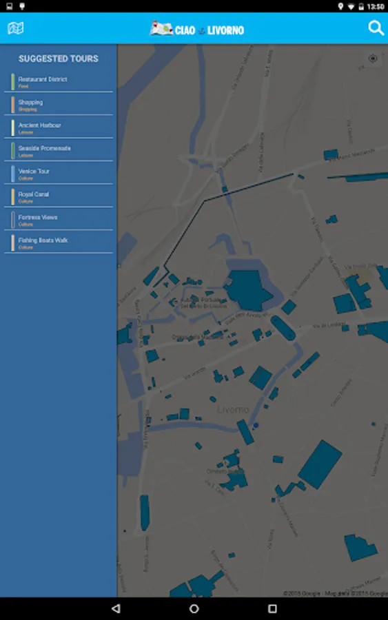 The most useful and appreciated feature of this app is a set of 8 tours designed expressly for those that choose to slow down and spend one or more relaxing days in town to benefit from the sun, shops and food. Ciao Livorno helps you organize your day and schedule your time in the most comfortable way providing walking time and distance for each of the suggested itineraries that are broken down into segments for even more flexibility. Simply check the map to go from one to the next one, mixing various activities: relaxation, culture, shopping...