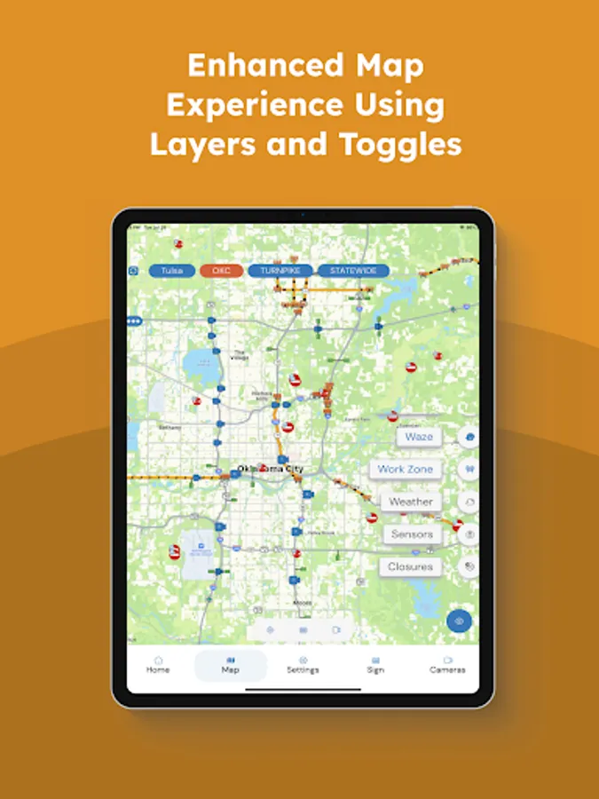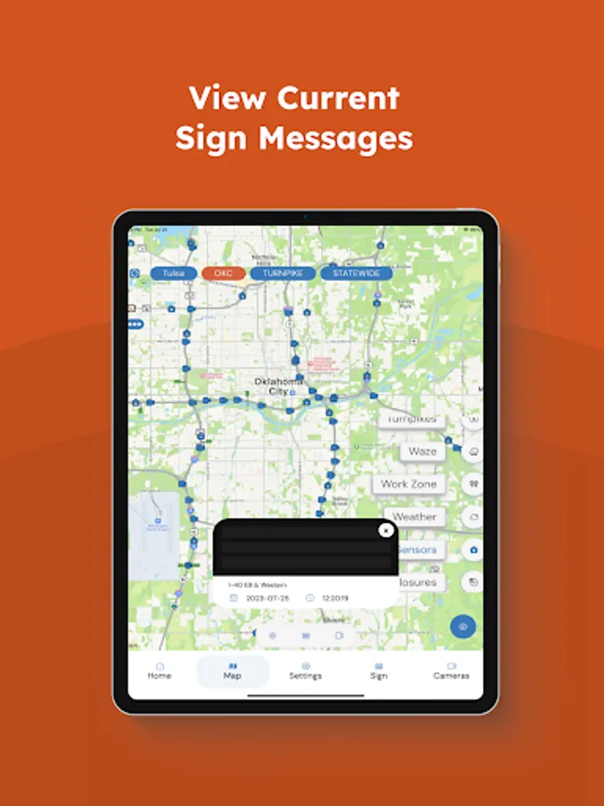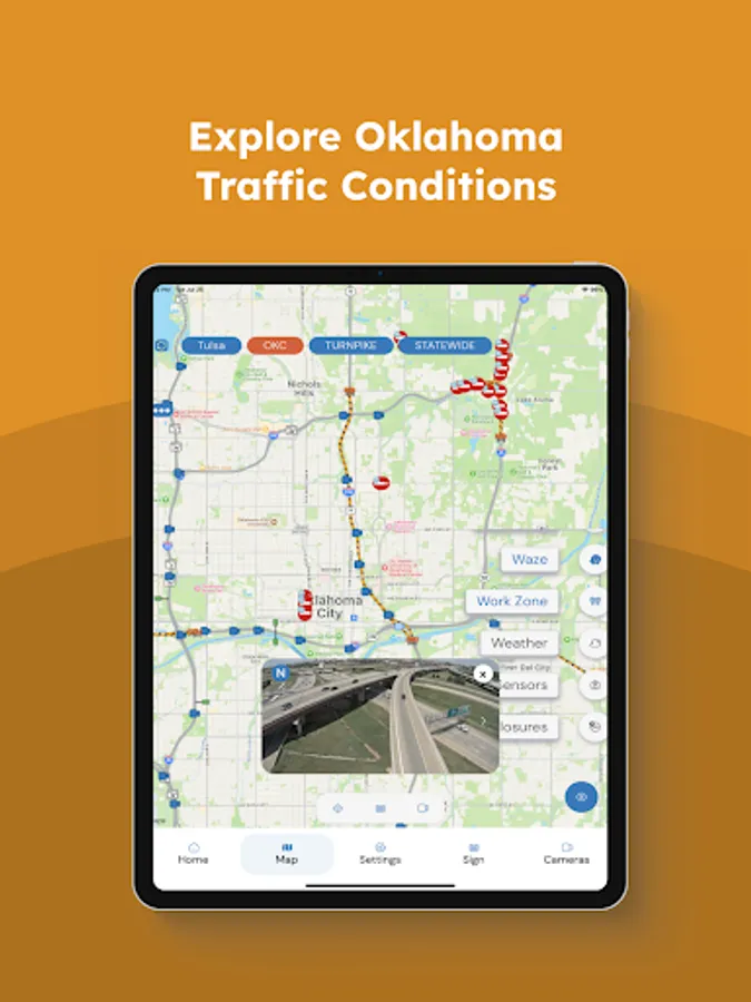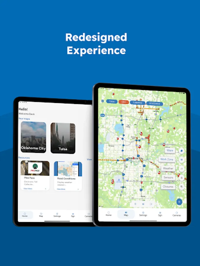 This app gives you easy access to the Oklahoma Intelligent Transportation Systems (ITS) devices and resources like the OTA PIKEPASS website. The Drive Oklahoma app includes traffic and road condition information for Oklahoma roadways across the state.