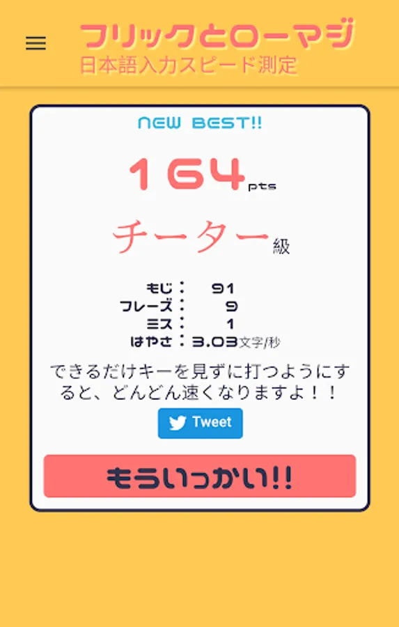 As the next sentence is always displayed, the time from when you see the problem sentence until when you start typing does not occur, which is often found in conventional typing software.