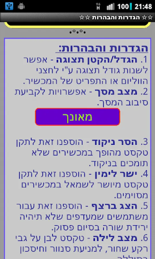 5. Night Mode - White text on a black background, to prevent dazzle and battery savings.
