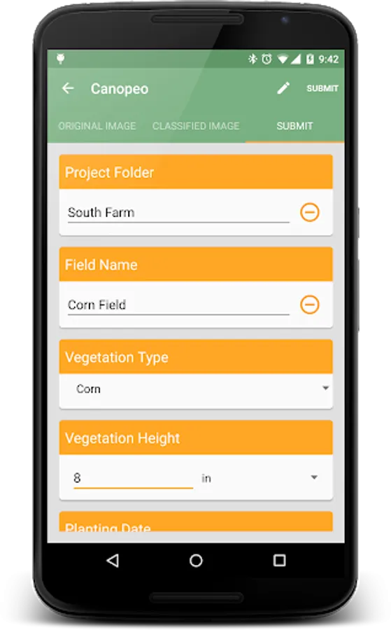 [4] Add notes for the image such as crop type, planting date, vegetation height, and more before uploading the images with the associated data to your personal account.