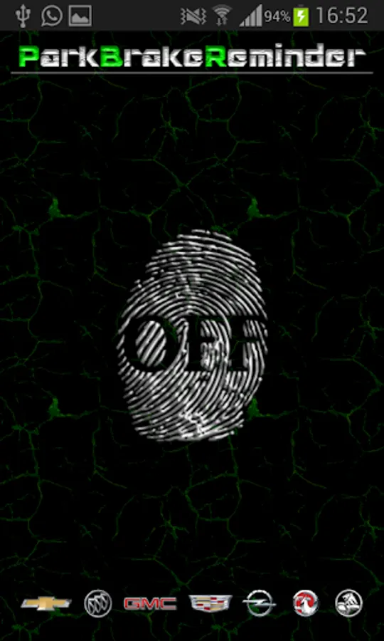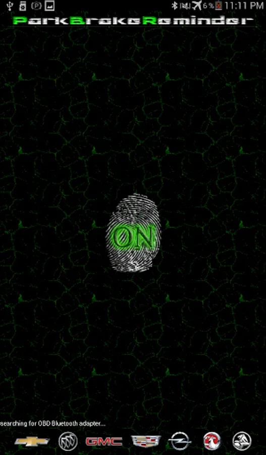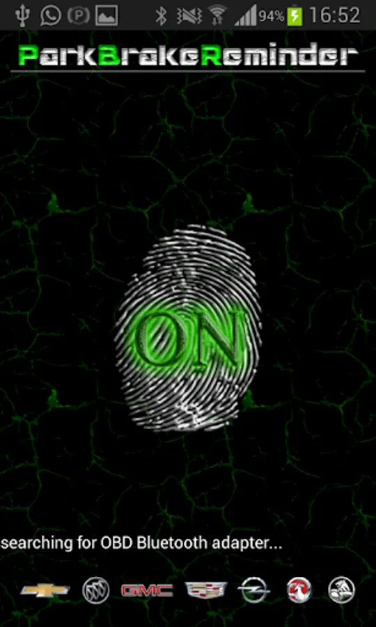 This App Park Brake Reminder(PBR) is running on the android devices combined with a Bluetooth connection to a OBD dongle, equipped on the vehicle. After activation and pairing of the OBD dongle, the PBR is starting to listen to the vehicles CAN bus via OBD Bluetooth dongle. Once activated, the app is proceeding working in the background, as long the user desire, f.e. one week or even year. Even if the cell phone has shut off, because of energy loss, the PBR will start working automatically, if it was activated before shut down.