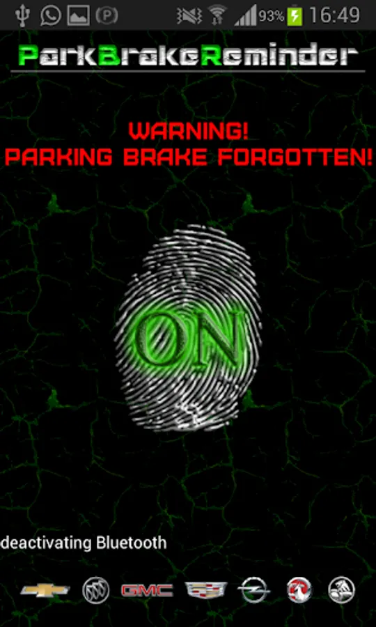 If the PBR has identified, that the driver has forgotten to activate the park brake by leaving the vehicle in an unsafe state, the PBR is notifying via alarm sound and vibration over the cell phone.