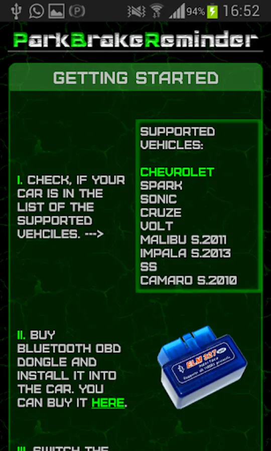 Please, be aware that not every vehicle is supported. Review this list of supported vehicles to be sure yours is listed, before buying this application.