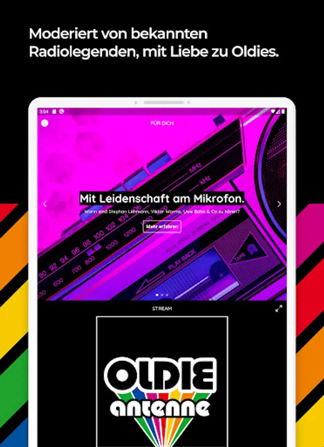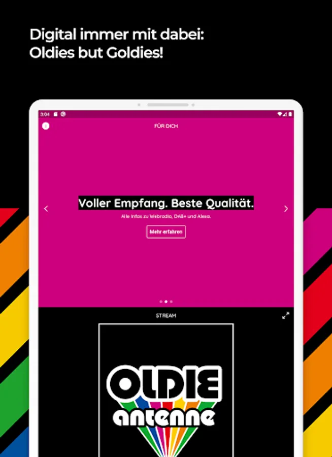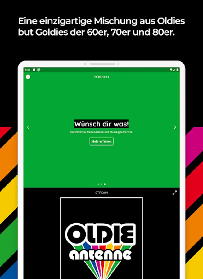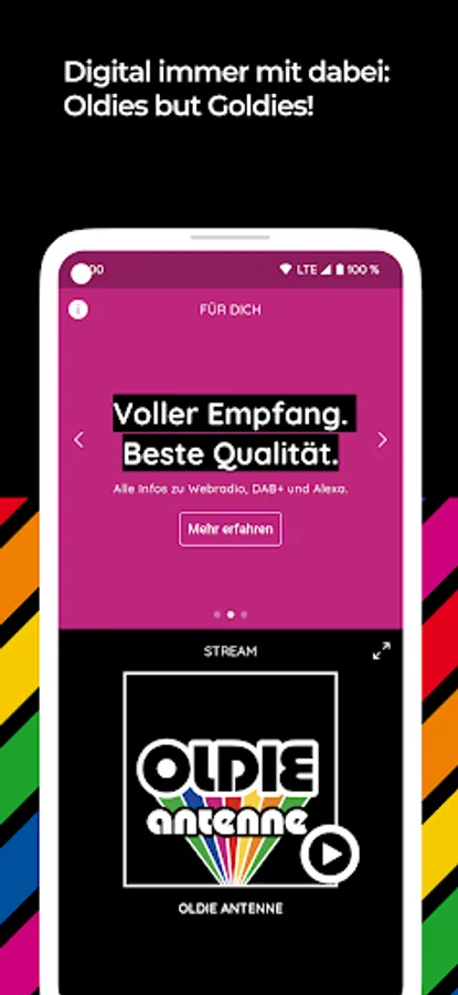 With the OLDIE ANTENNE app you always have your new favorite radio station with you!