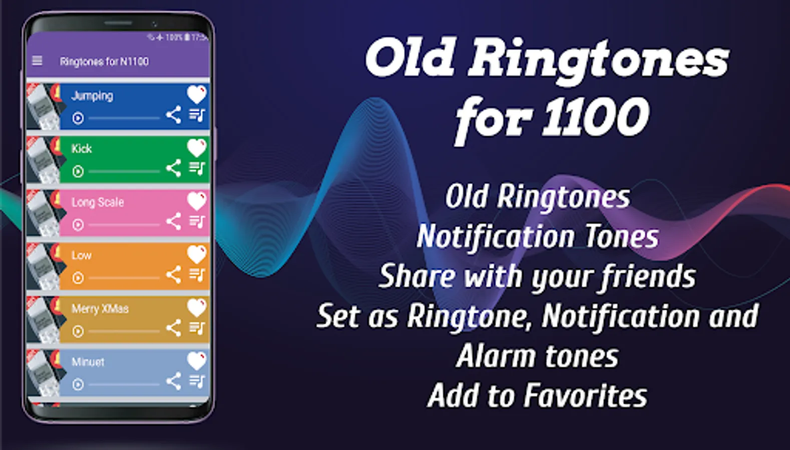 The Nokia 1100 is the best selling phone of all time, with sales of 250 million. We have collected popular nokia 1100 ringtones for you in this app. You can share old 1100 ringtones in the app with your friends, set them as ringtone, notification sound and alarm sound. If you want to take a short trip to the past, you can download the application.